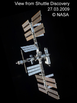 International Spacestation ISS and Space Shuttle Discovery on 2009 March 21
