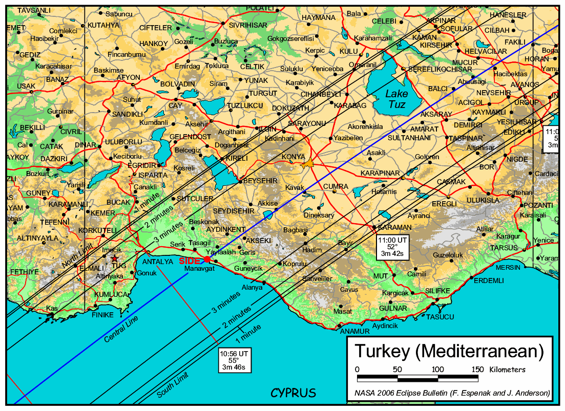 Am 29.März 2006 findet eine totale Sonnenfinsternis statt, die u.a. in der Türkei beobachtbar ist.